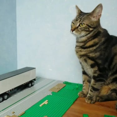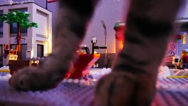 C'est mon chat Nino. Il est aussi passionné par les Legos depuis qu'il est tout petit ☺ (dès que j'anime un film, il vient voir ce que je fais). Il a aujourd'hui deux ans. C'est lui qui joue le rôle de Catzilla dans mes films.